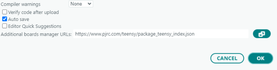 To install Teensy on Arduino IDE 2.x, click File > Preferences (on MacOS, click Arduino IDE > Settings).